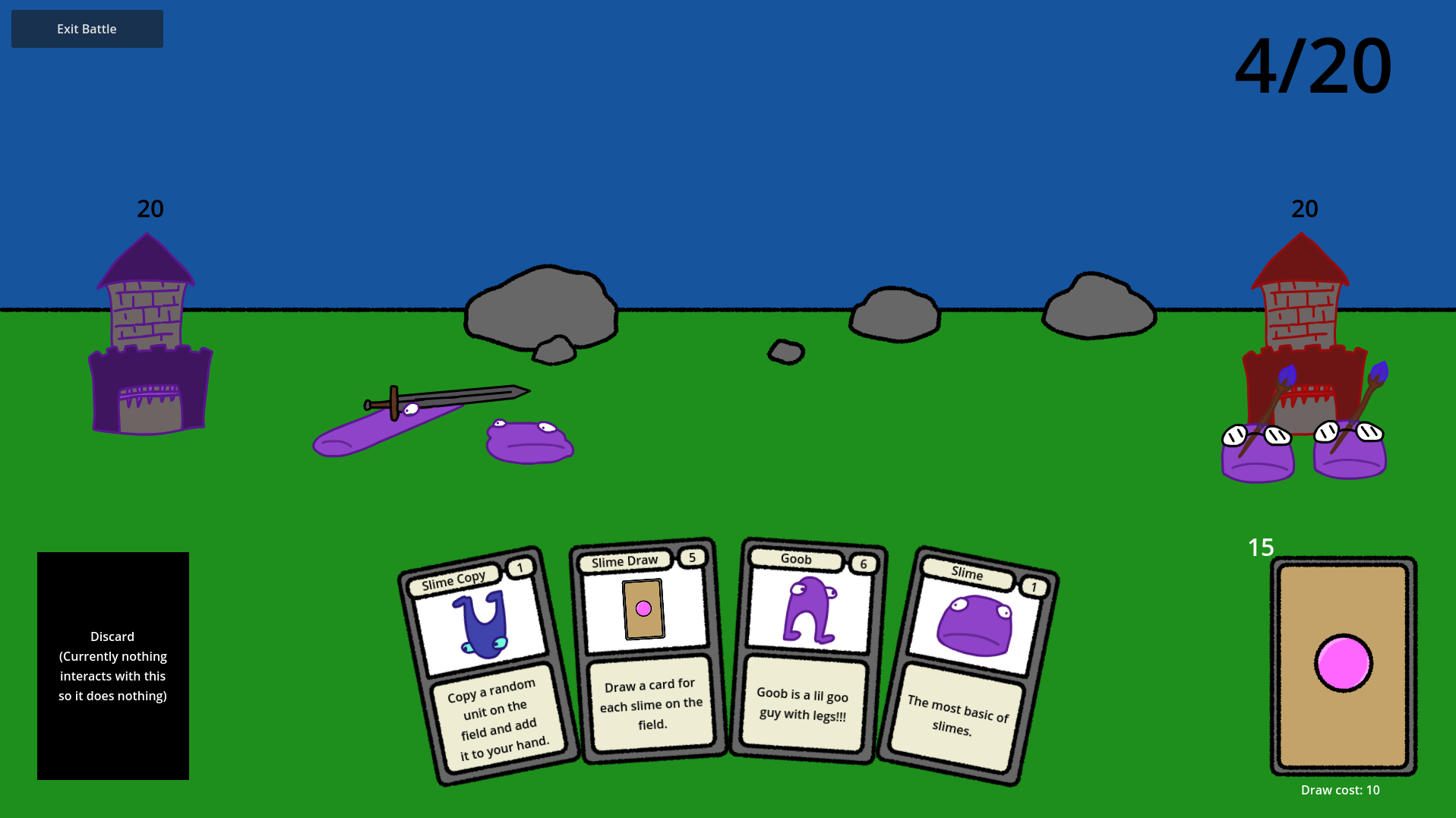 A short prototype for a game that combines card game mechanics and real time strategy base battling mechanics such as those seen in Battle Cats and Age of War.